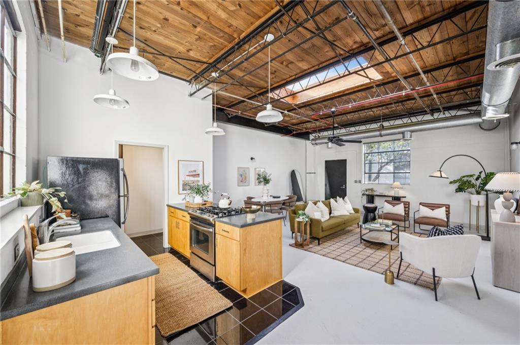 Extra-large and full of light, this Inman Park loft combines the cool factor of true loft living with a floor plan that actually works. With 12-foot ceilings, skylights, and freshly painted concrete floors, it feels open and bright, yet offers tons of storage, a full pantry, and a separate laundry room- are finds in any loft. The spacious layout includes bonus space that's perfect for a home office, and the totally private sun porch adds even more living area and a sense of quiet seclusion. Located in Inman Motor Works, a gated community with a two-car tandem parking spot, this home is steps from your favorite cafes, parks, the Beltline, and so much more- and includes a coveted membership to the private Inman Park Pool.